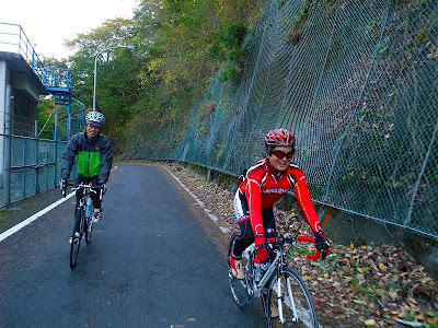 新座市商工会青年部部長の上さまに誘われて、自転車ツーリングに出かけました。本日のクラブは朝霞市で自転車店を営んでいるふえきサイクルさんを中心に結成されたツーリングクラブだそうです。朝6時15分にお店に付きました。しばらくすると上様もやってきました。相変わらずウェアーと自転車は決まっています。